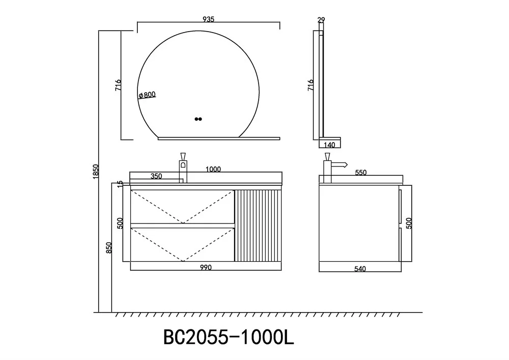 • Раковина-столешница: искусственный камень, столешница фактурная белая, 1 отверстие под смеситель
