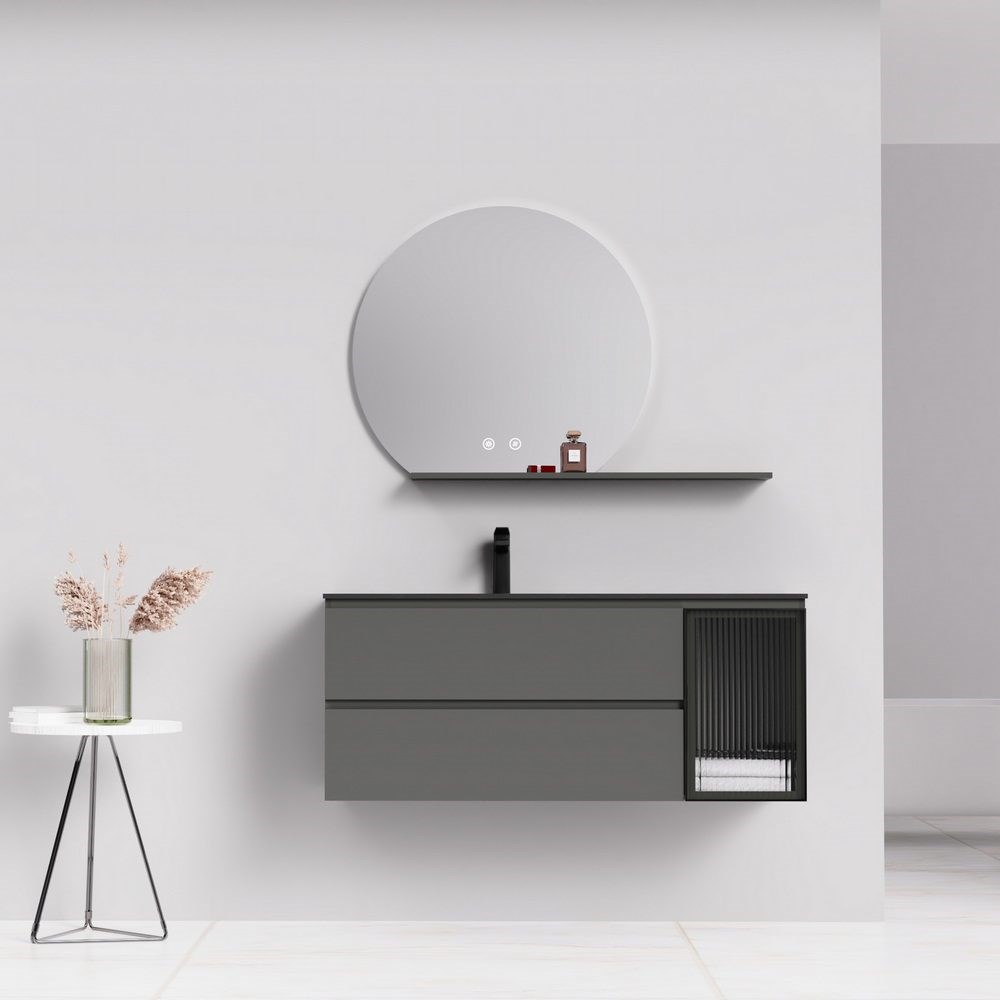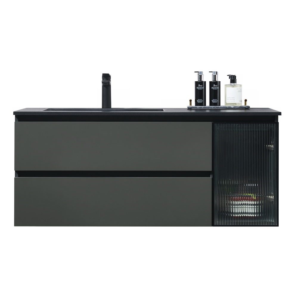 • Раковина-столешница: искусственный камень, столешница фактурная, черная матовая, 1 отверстие под смеситель