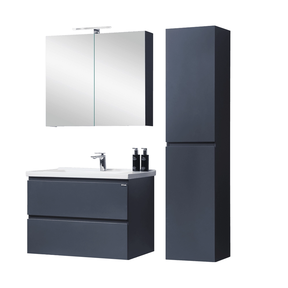 • Цвет: Графитовый матовый PU(покраска PU(полиуретан)) • Материал: Влагостойкий МДФ + ДСП • Раковина: санитарный фарфор, 1 отверстие под смеситель • 2 выдвижных ящика • Доводчики DTC • Донный клапан push-open в комплекте