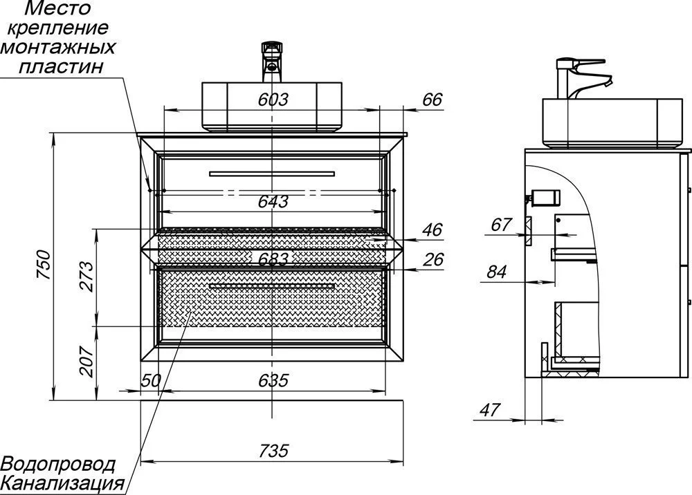 Тумба с раковиной STWORKI Эстерсунд 75 белая матовая, простоун беж 460004