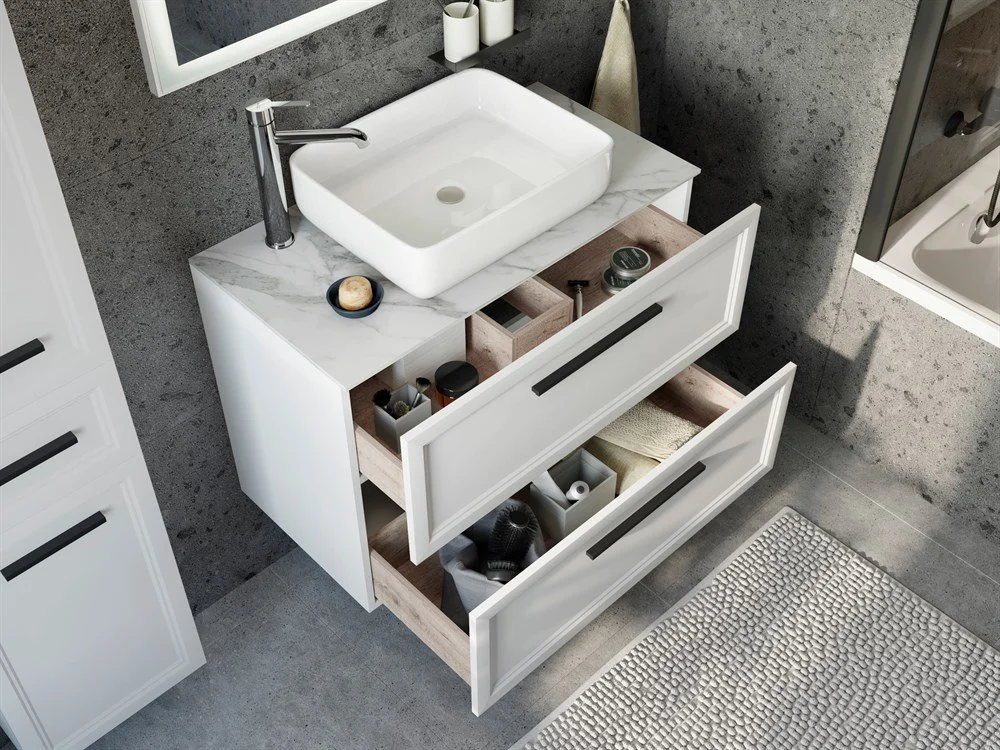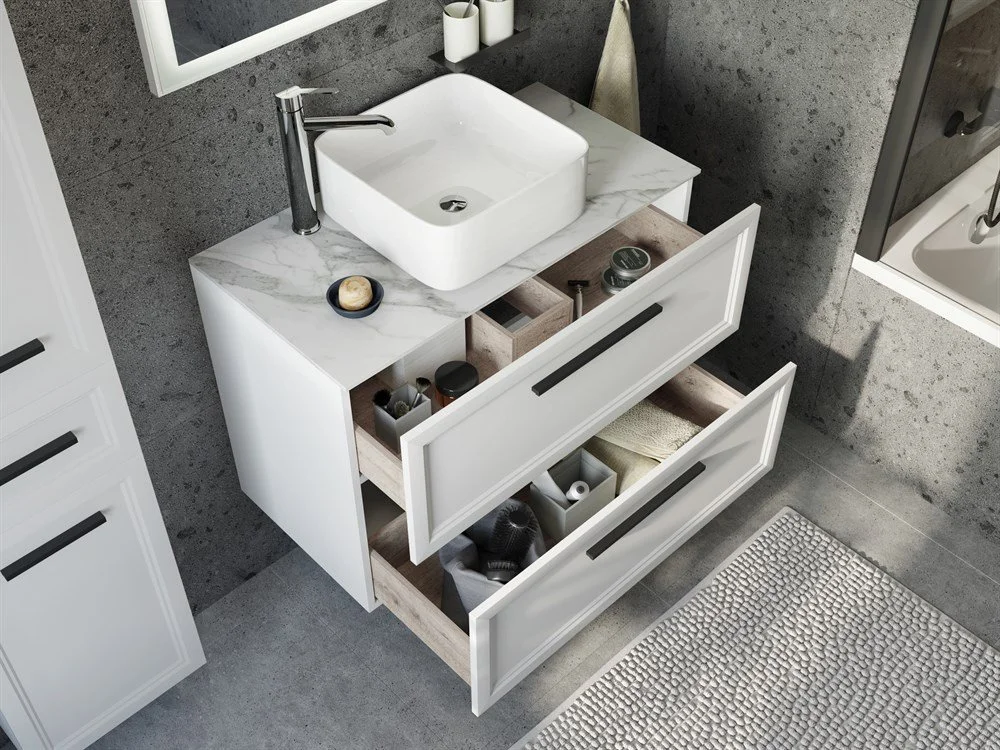 Тумба с раковиной STWORKI Эстерсунд 90 белая матовая, монте тиберио с отверстием под смеситель в сто