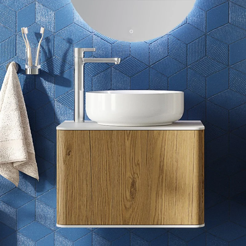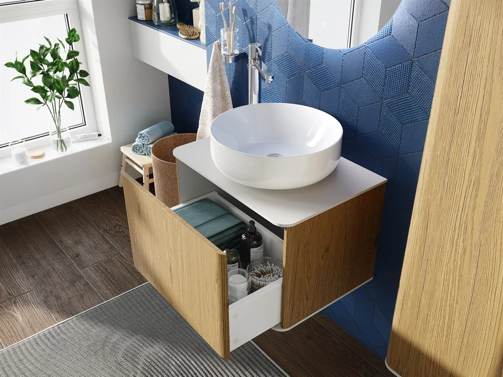 Тумба с раковиной STWORKI Ноттвиль 60 дуб верона, с отверстием под смеситель 414394