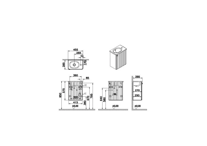 • Модуль поставляется с круглой раковиной в комплекте и круглой ручкой в матовом черном цвете