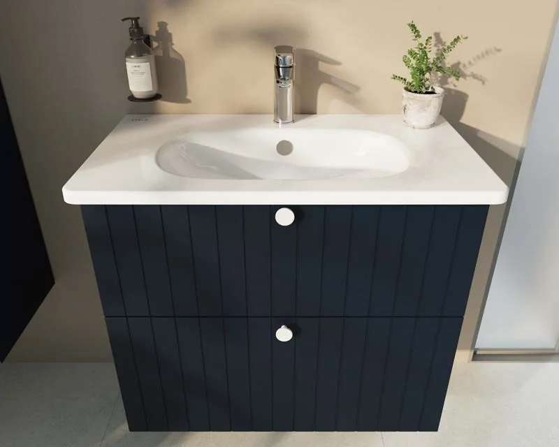 • Модуль поставляется с круглой раковиной в комплекте и круглой ручкой в матовом черном цвете
