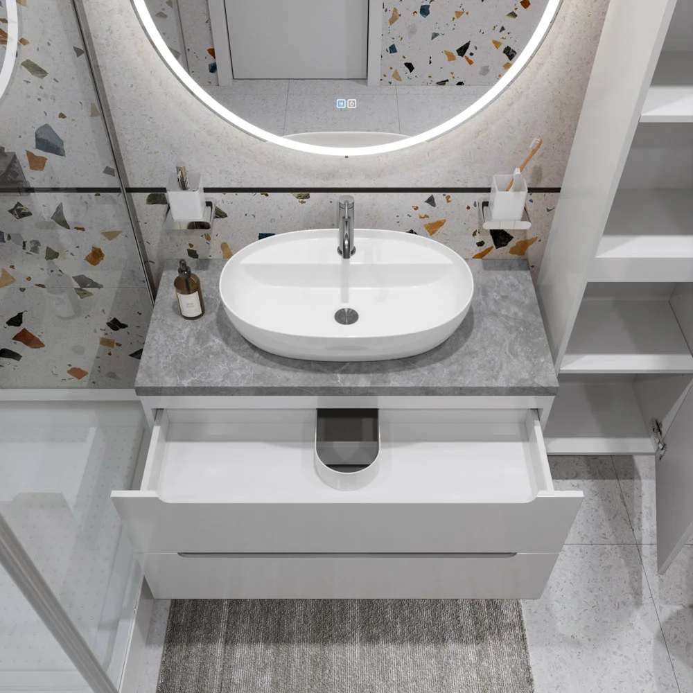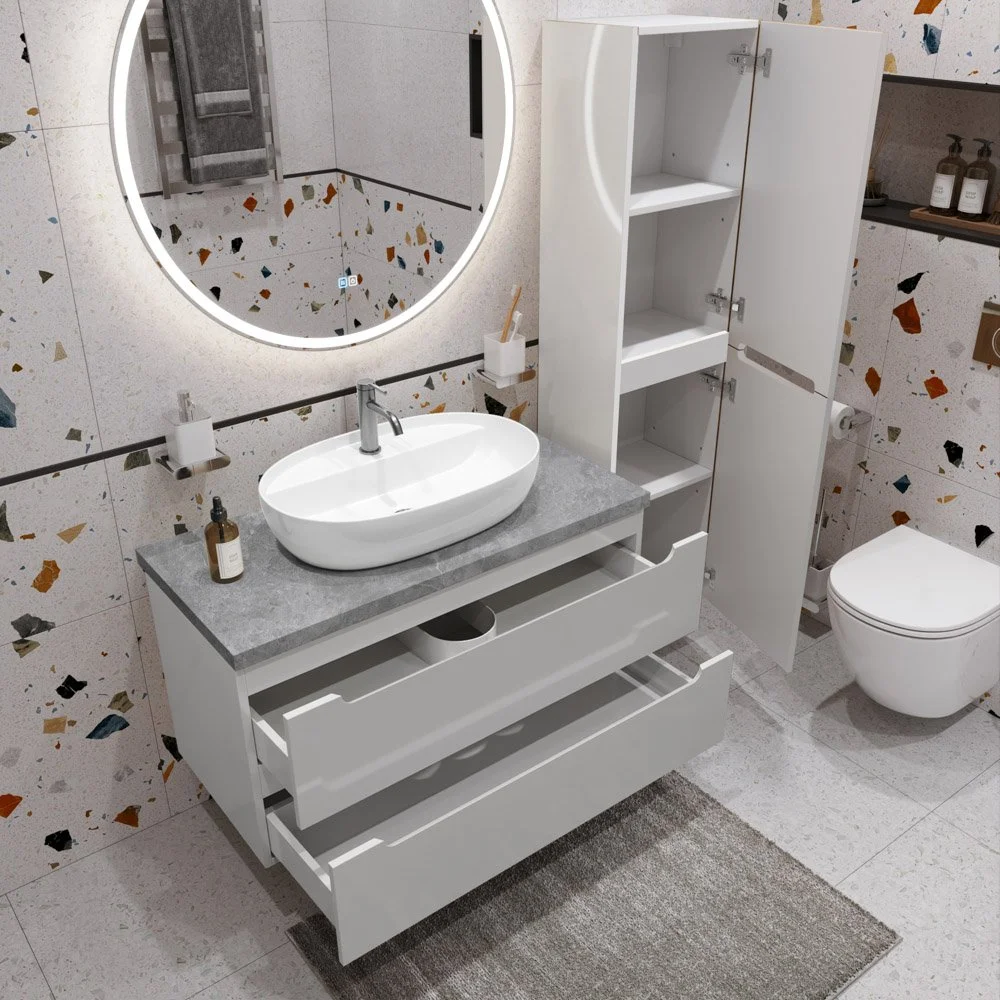 Тумба со столешницей и раковиной BelBagno ETNA 100 etna100bl-kepmgl-1346-set подвесная ETNA100BL-KEPMGL-1346-SET