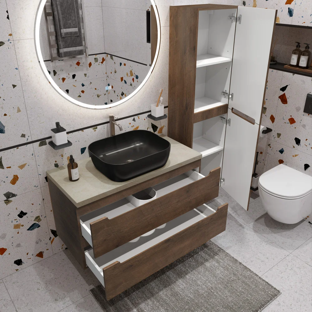 Тумба со столешницей и раковиной BelBagno ETNA 80 etna80rw-kepmco-1302h301-set подвесная ETNA80RW-KEPMCO-1302H301-SET