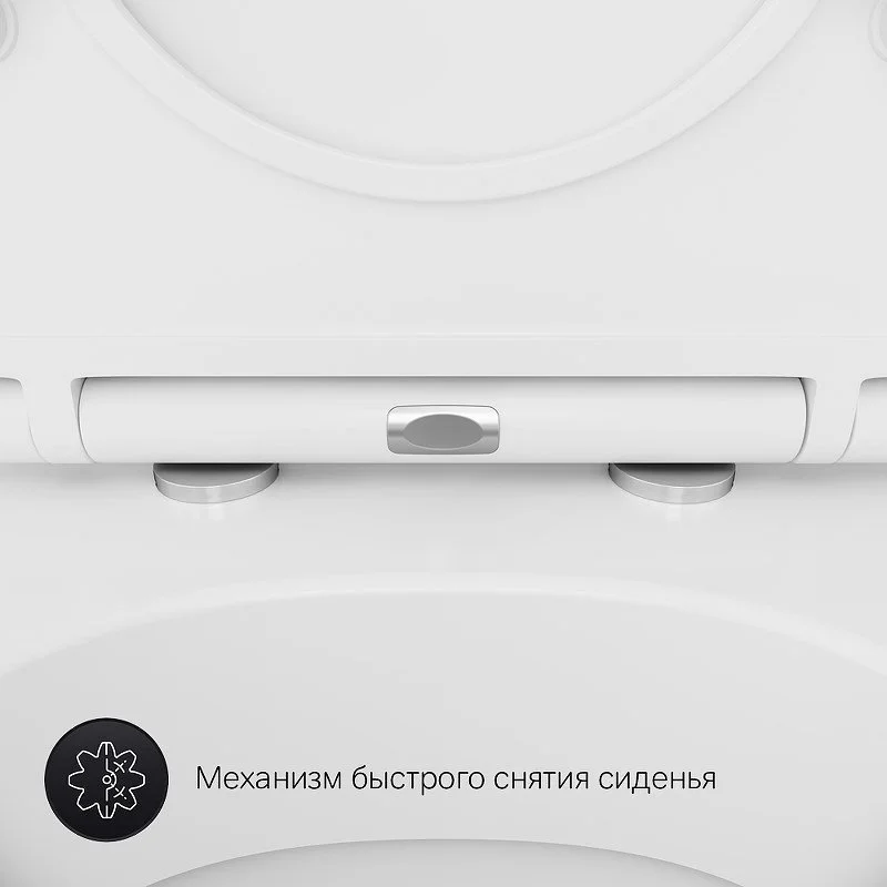 Механизм плавного опускания рассчитанный на 100 000 закрываний и быстрого снятия - комфорт в использовании и легкость в уходе за сиденьем и керамикой.