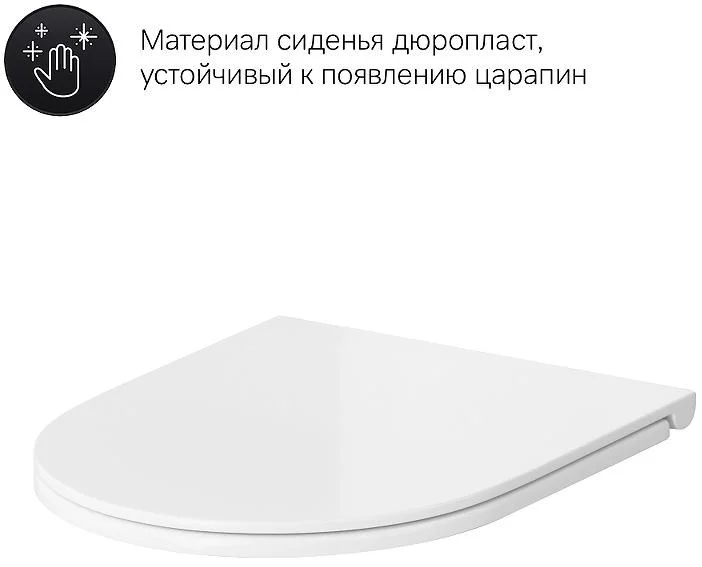 Комплектуется быстросъемным сиденьем из дюропласта с механизмом плавного закрывания. Материал сиденья дюропласт устойчивый к появлению царапин в сочетании с креплениями из нержавеющей гарантируют долговечность сиденья.