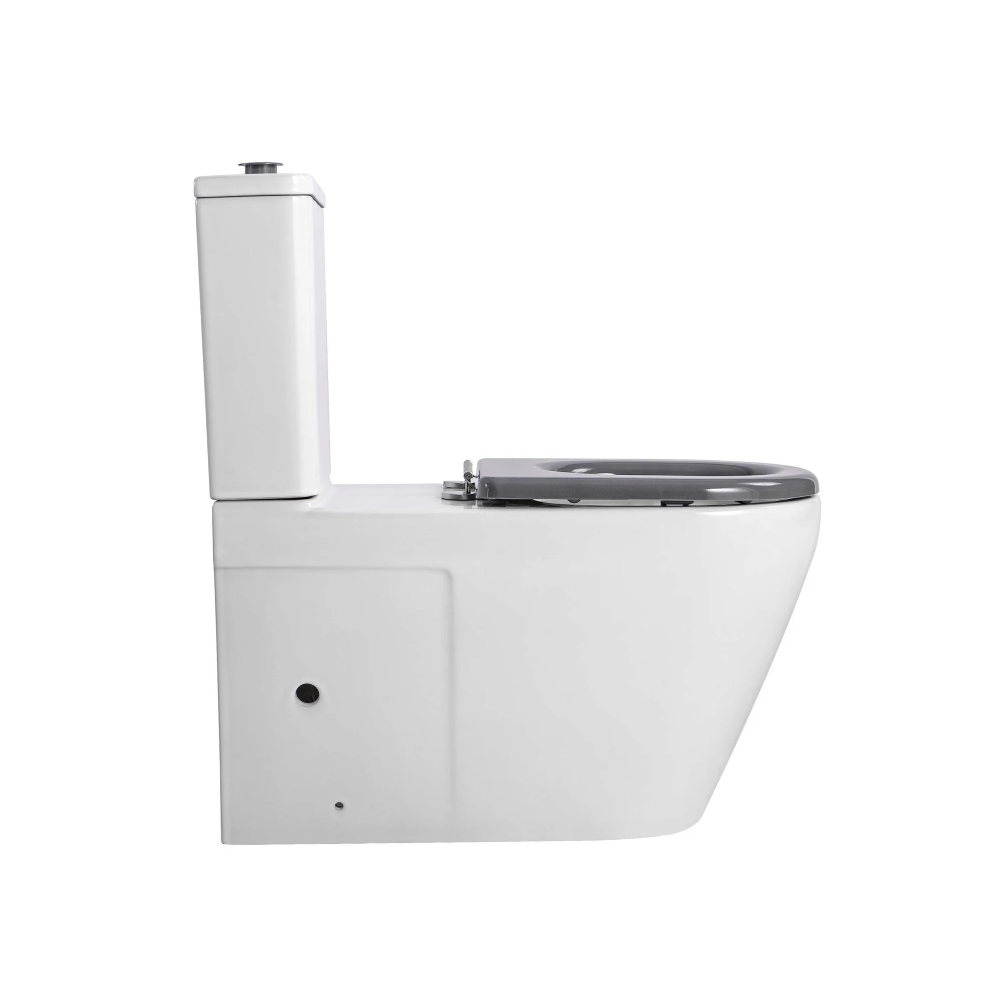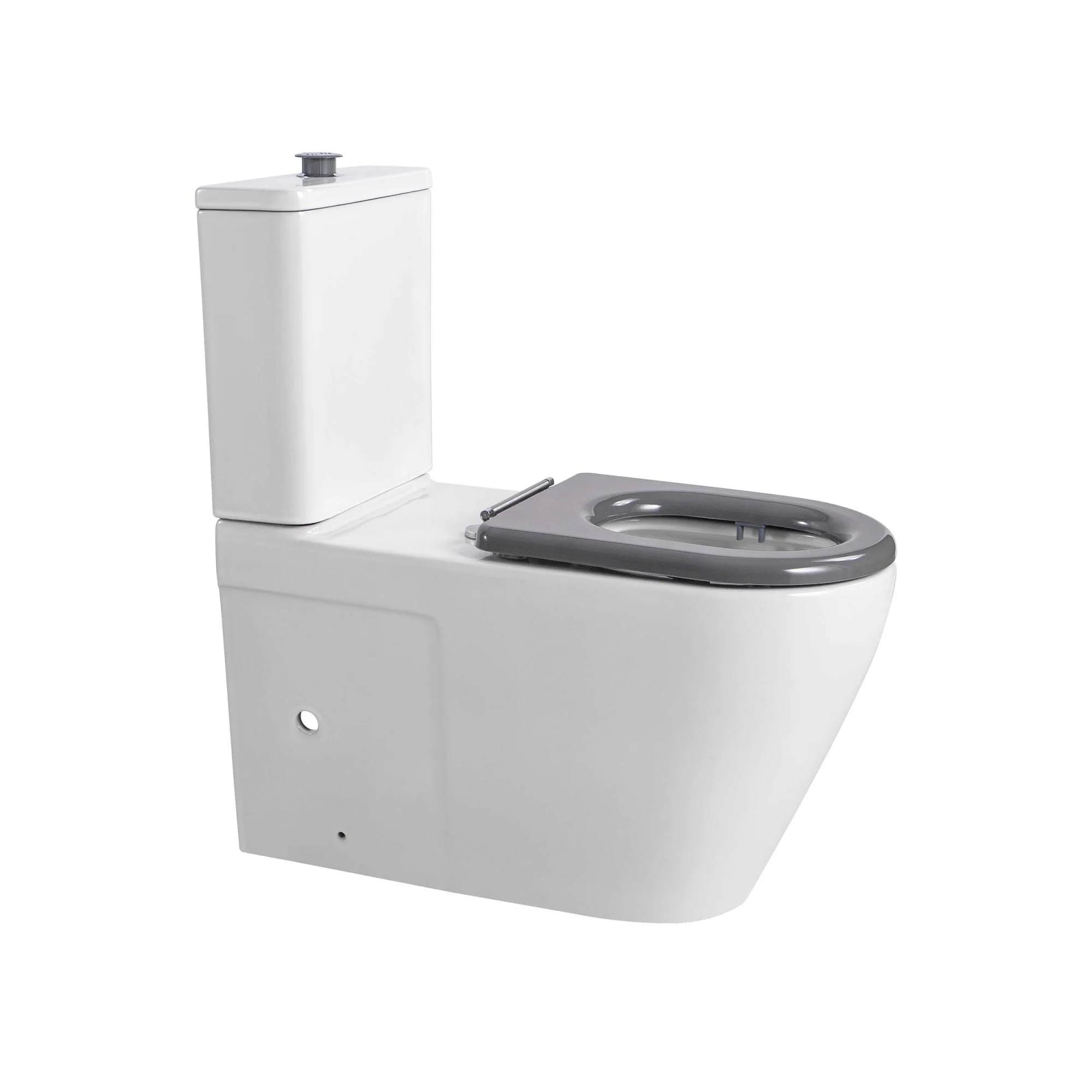 Напольный унитаз отличается увеличенными габаритами по сравнению со стандартными унитазами: увеличенная высота совпадает с высотой кресла-коляски для удобного пересаживания, увеличенная длина унитаза позволяет комфортно расположить кресло-каталку рядом с унитазом и перемещаться с кресла на унитаз без дополнительных усилий.