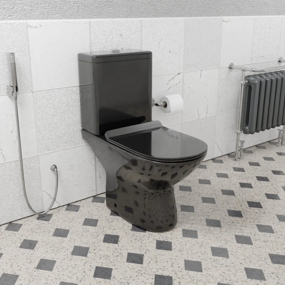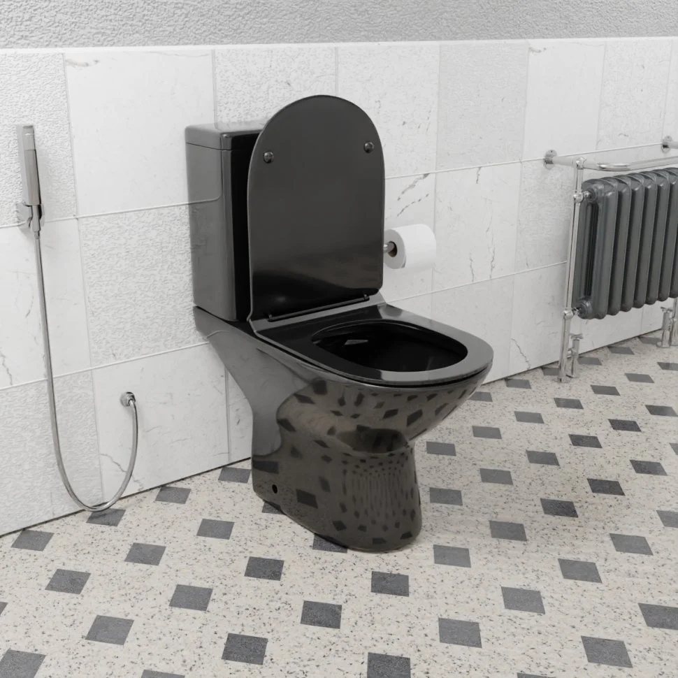 Унитаз напольный CeramaLux 9126-18 черный с крышкой микролифт