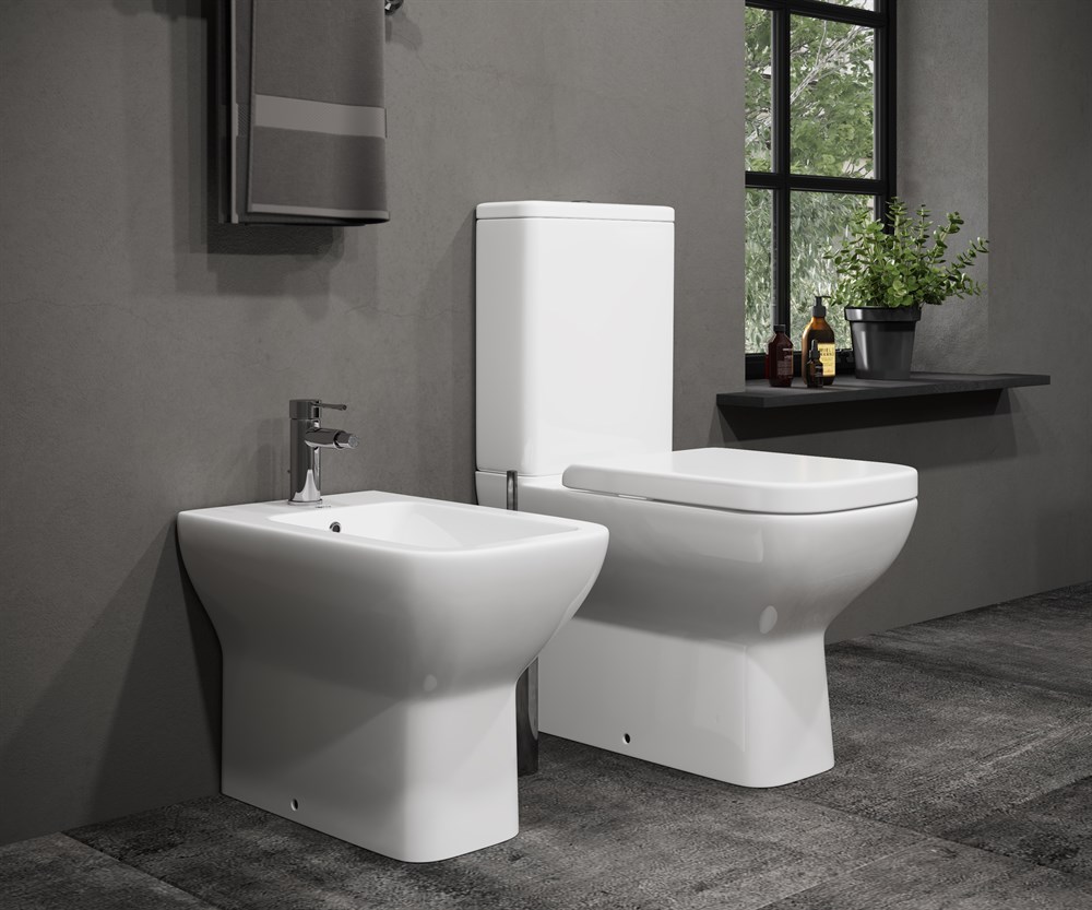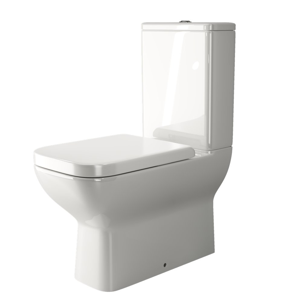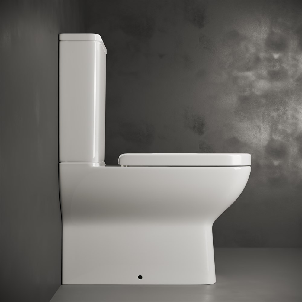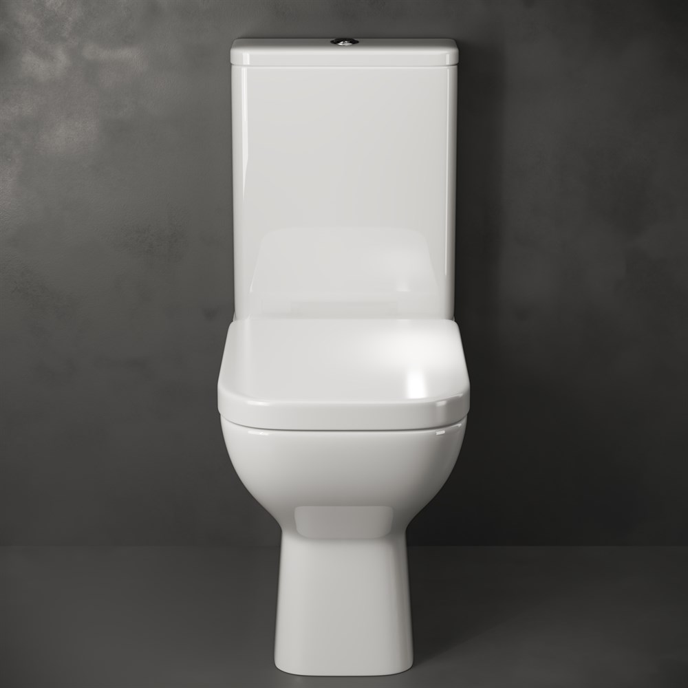 Напольный пристенный унитаз для монтажа с бачком Access, двойной смыв 3/6 арматура Geberit, нижняя подводка глубокий смыв, горизонтальный (универсальный) выпуск, с крепежом, с сидением и крышкой с функцией плавного закрытия, дюропласт