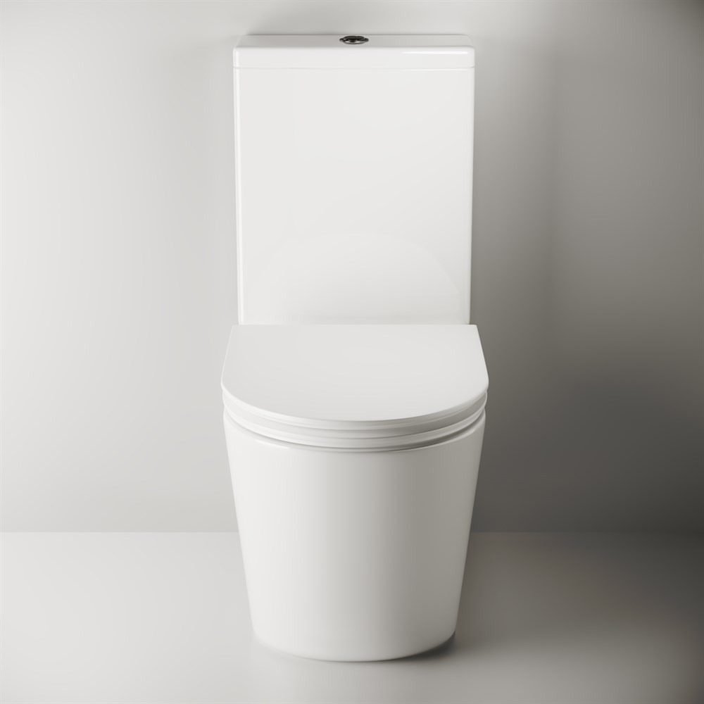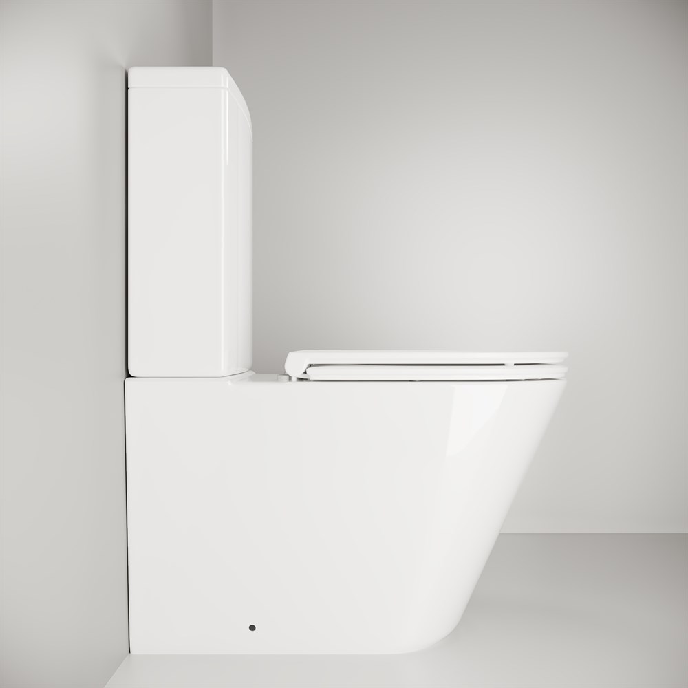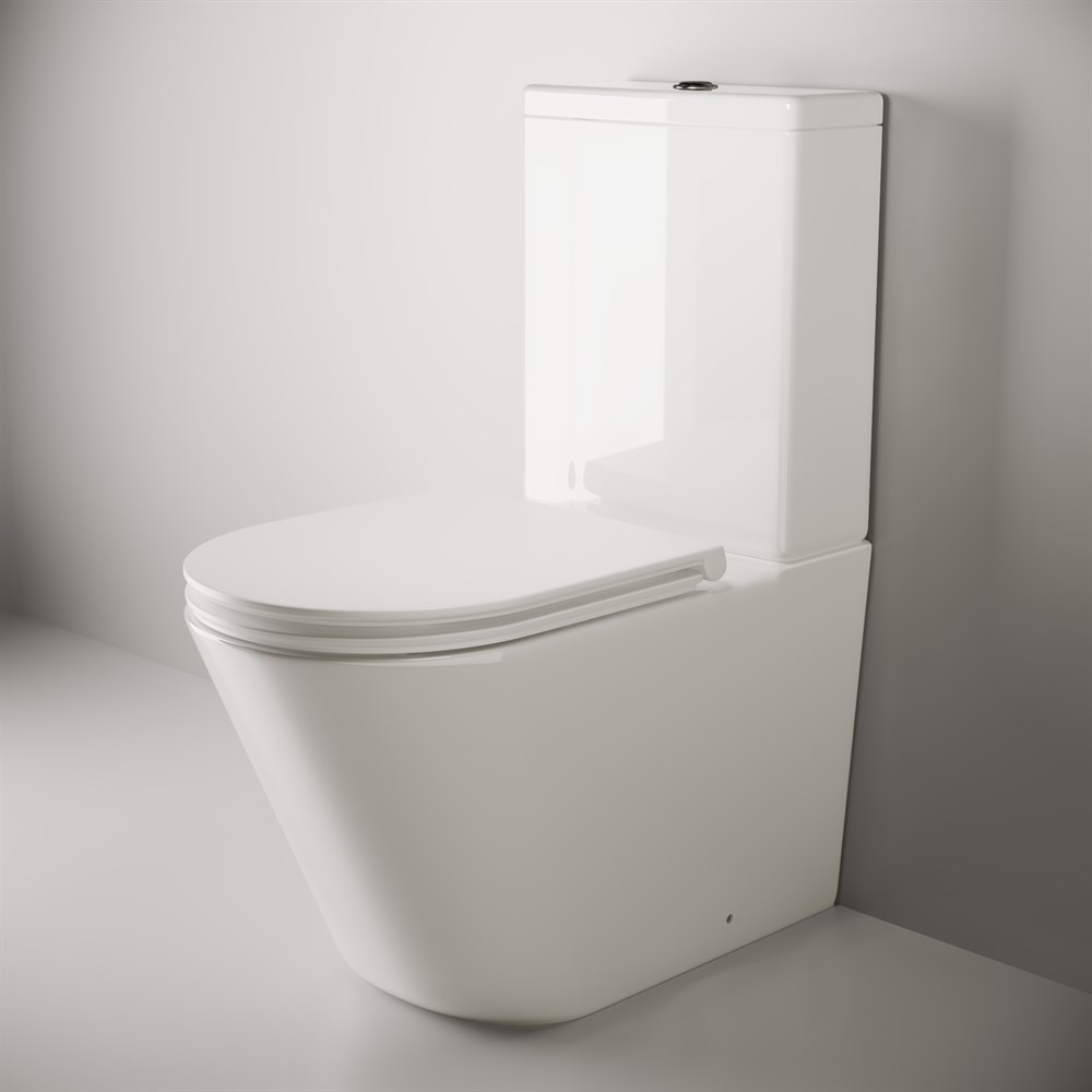 Напольный пристенный унитаз с бачком Trend Rimless, двойной смыв 3/6 арматура Geberit, нижняя подводка глубокий смыв, горизонтальный (универсальный) выпуск, с крепежом, с ультра тонким сидением и крышкой с функцией плавного закрытия, дюропласт HDA297