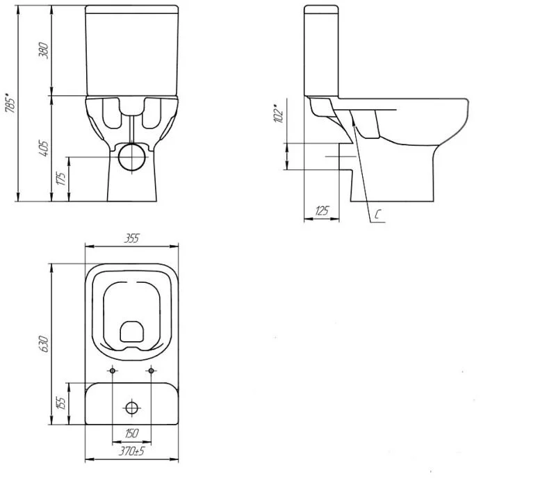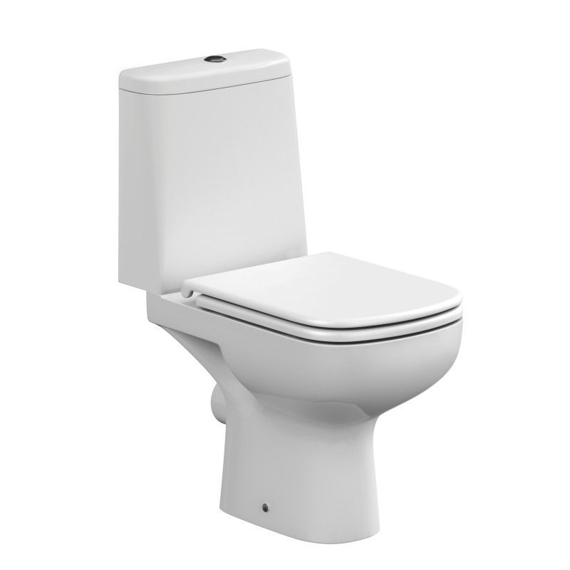 унитаз керамический безободковый, горизонтальный выпуск, бачок смывной керамический с нижним подводом воды, двухуровневый спускной механизм, Крышка-сиденье из дюропласта легкосъемное с функцией плавного закрывания, монтажный комплект, инструкция/гарантийный талон
