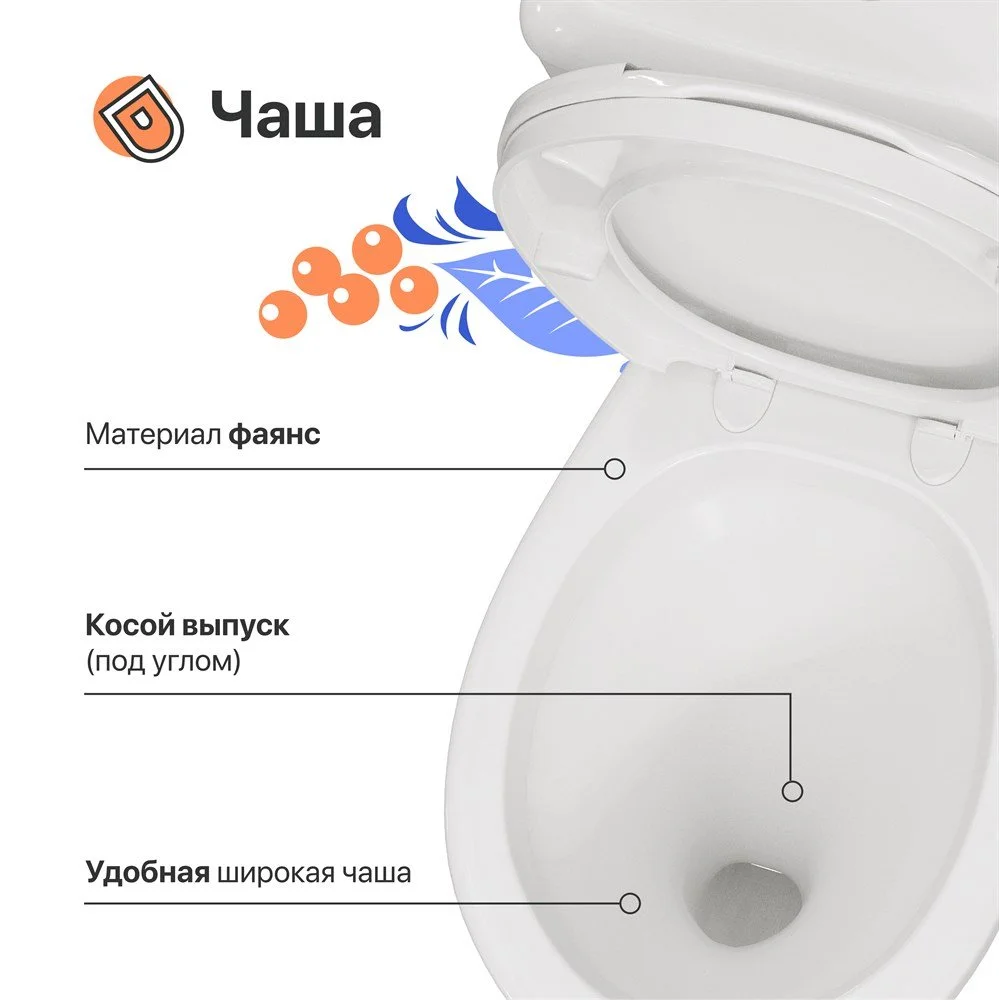 Унитаз напольный DIWO Ростов 0401 , напольный , с бачком , с косым выпуском , фаянс 549213