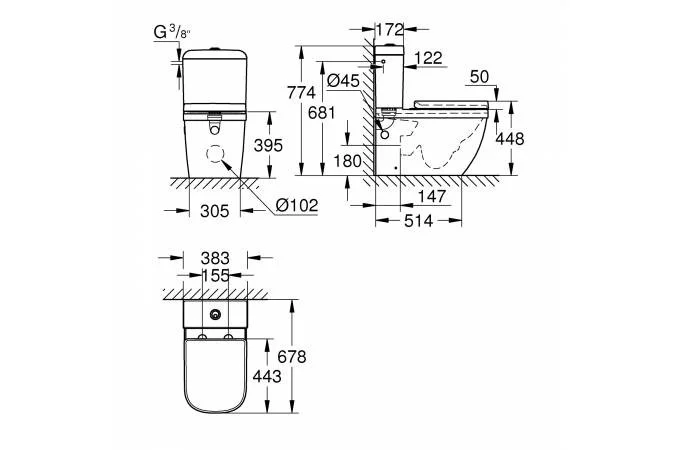 Унитаз напольный GROHE Euro Ceramic, альпин-белый (39462000)