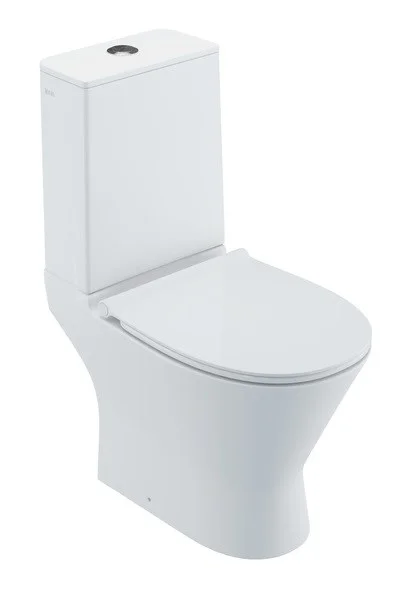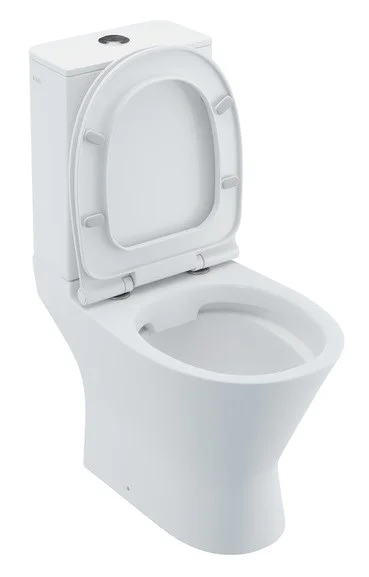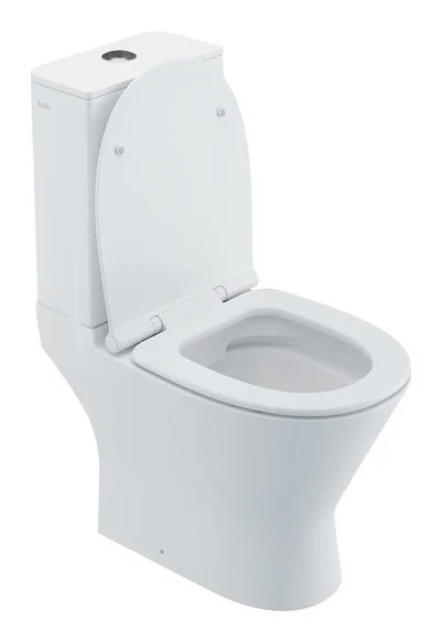 Унитаз-компакт с сиденьем из дюропласта с Soft Close и Easy Fix, безободковая конструкция, двухуровневая водосливная арматура, горизонтальный выпуск, скрытый гидрозатвор, высококачественный санфарфор. Упаковка: картонная коробка. Размер: 666х373х814 мм.