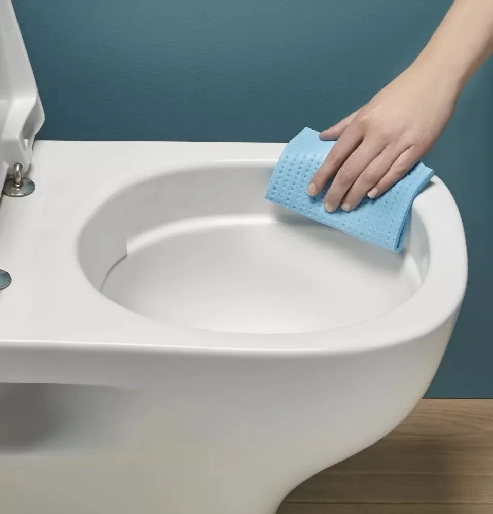 • Безободковая конструкция чаши делает унитаз гигиеничным и удобным. Две струи воды создают эффект водоворота, что позволяет полностью очистить всю внутреннюю поверхность.