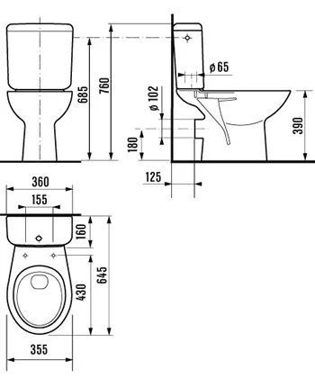 Размер: 65х36х76см. Напольный унитаз с бачком.