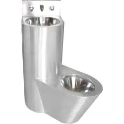 Антивандальный туалет с умывальником выполнен из нержавеющей стали AISI 304 и не имеет острых углов. Предназначен для мест где требуется повышенное внимание к прочности и качеству оборудованию санузлов. Смеситель в комплект не входит, но можно заказать его отдельно. Туалет расположен справа от умывальника