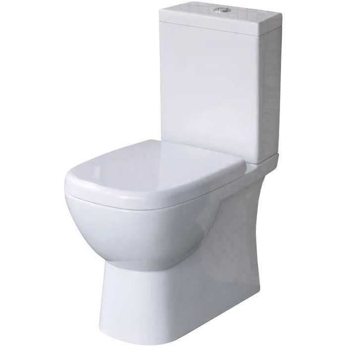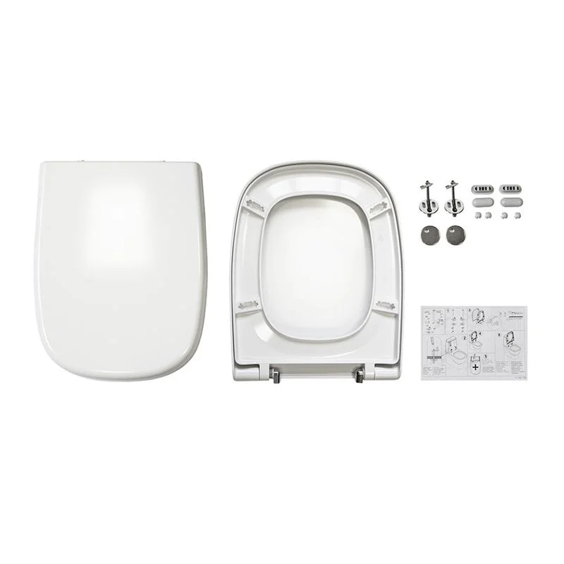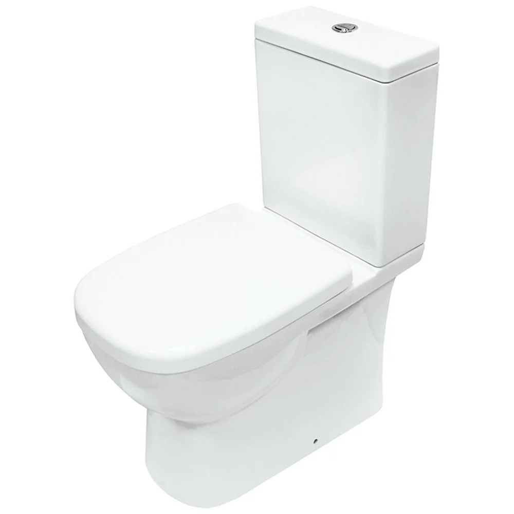 Чаша унитаза со скрытом креплением, сиденье из дюропласта с механизмом плавного опускания.