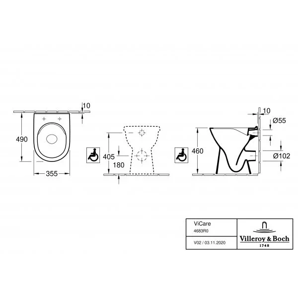 Унитаз напольный Villeroy & Boch ViCare CeramicPlus 4683R0R1-GP с сиденьем