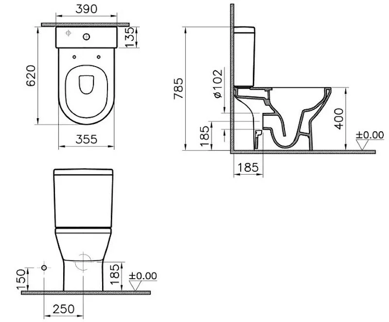 Унитаз напольный Vitra Integra Square 9833B003-7206 компакт с сиденьем микролифтом