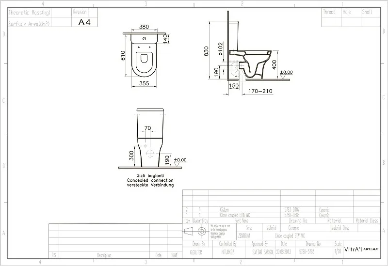 Унитаз напольный Vitra Zentrum 9012B003-7202 компакт с бачком и сиденьем микролифт