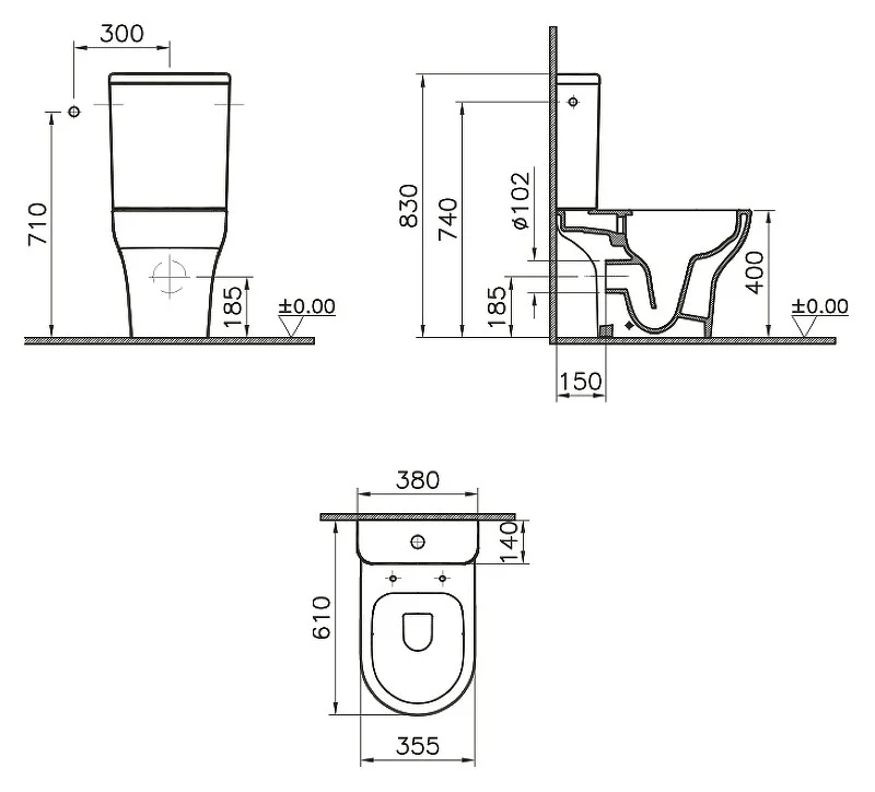 Унитаз напольный Vitra Zentrum 9824B003-7207 безободковый, крышка микролифт, белый