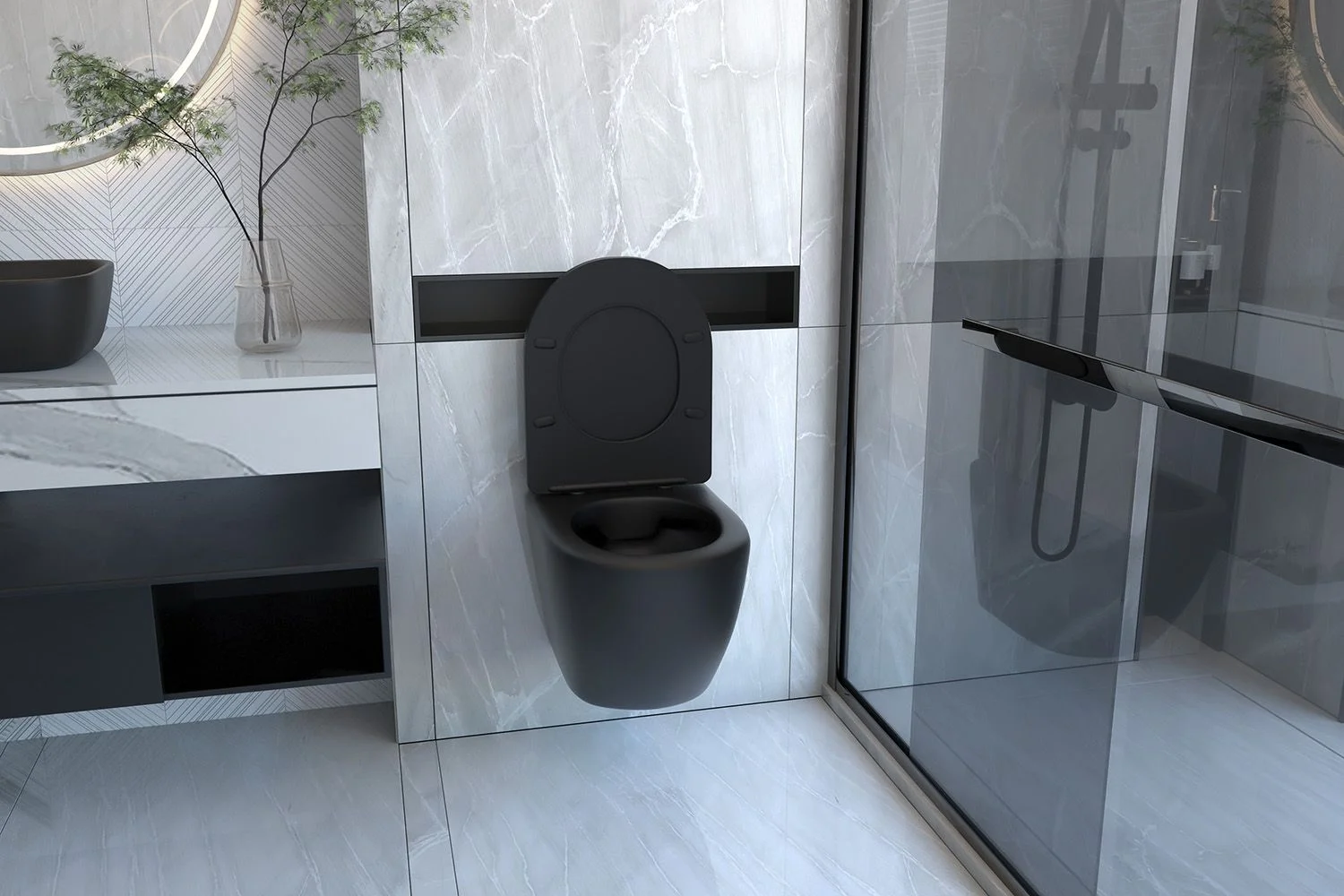 Унитаз подвесной ABBER BEQUEM AC1100MB черный матовый, безободковый с крышкой микролифт