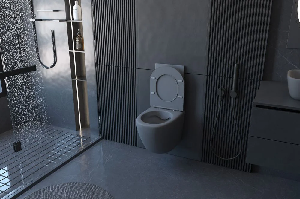Унитаз подвесной ABBER Bequem AC1101MG серый матовый, безободковый с крышкой микролифт