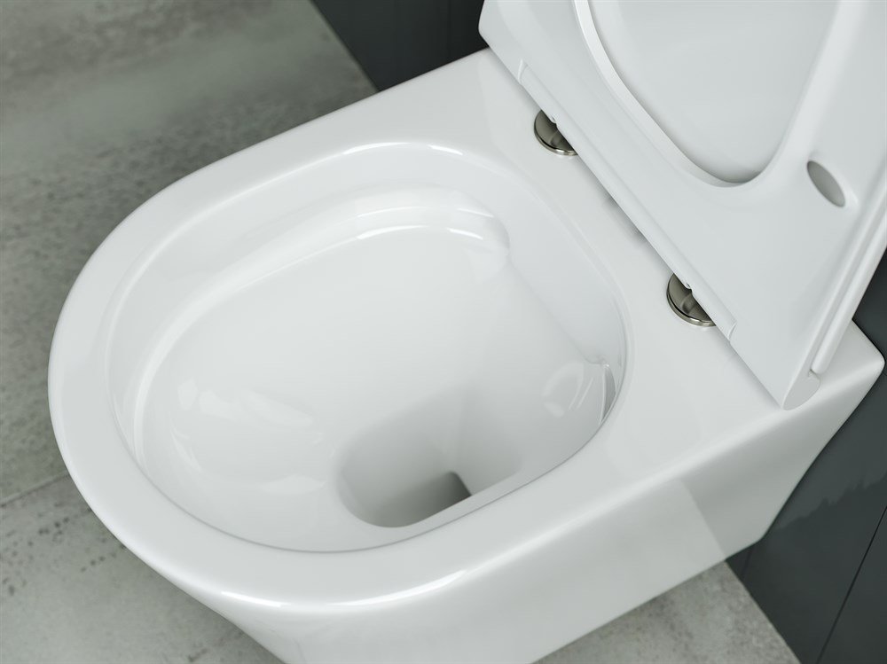 Подвесной унитаз Cubic Rimless, глубокий смыв, с крепежом для полностью скрытого монтажа, ультра тонким с сидением и крышкой с функцией плавного закрытия