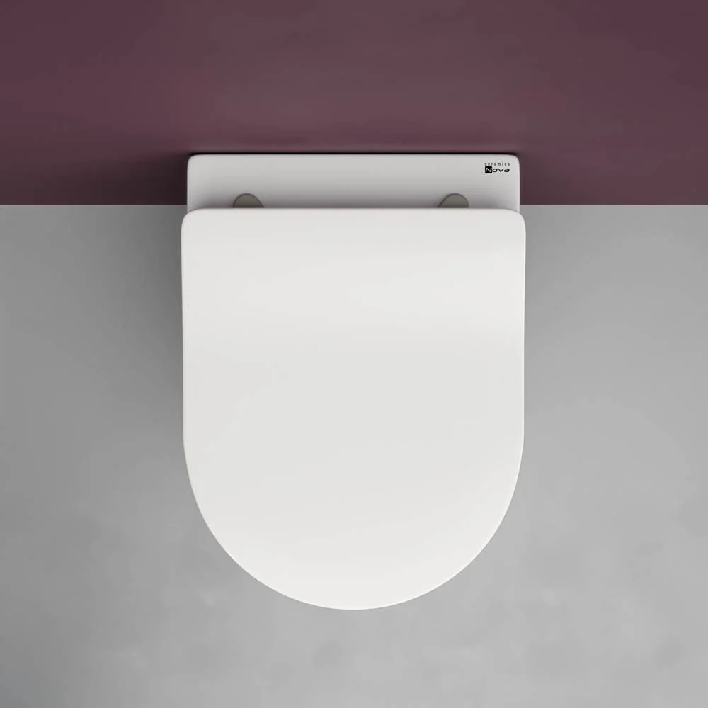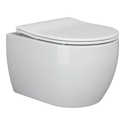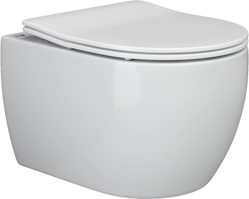 Подвесной унитаз New Day Rimless, глубокий смыв, с крепежом для полностью скрытого монтажа, ультра тонким с сидением и крышкой с функцией плавного закрытия, дюропласт