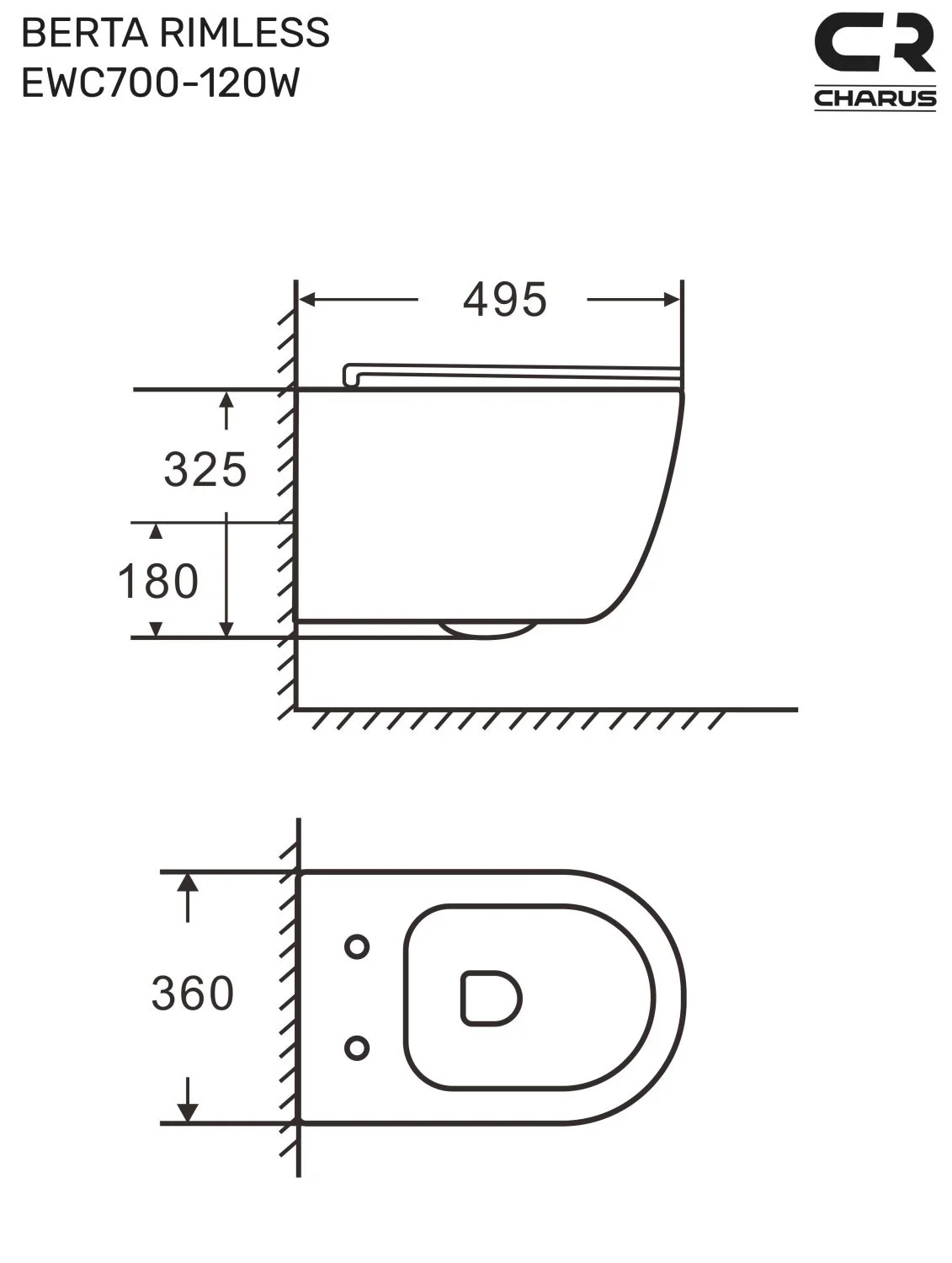 Унитаз подвесной CHARUS BERTA RIMLESS EWC700-120W безободковый c легкосъемным сиденьем микролифт