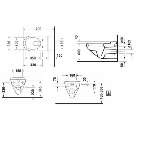 глубина 700 мм, для инвалидов на колясках, с вертикальным смывом