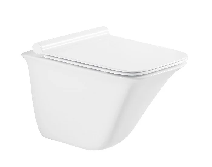 БЕЗОБОДКОВЫЙ подвесной унитаз. Горизонтальный выпуск ("P-Trap" 180 мм). Цвет: белый. Сидение: ультратонкое, быстросъёмное, дюропласт с металлическим крепежом и микролифтом (механизм "Soft Close"). Унитазы с герметически закрытой нижней частью.
