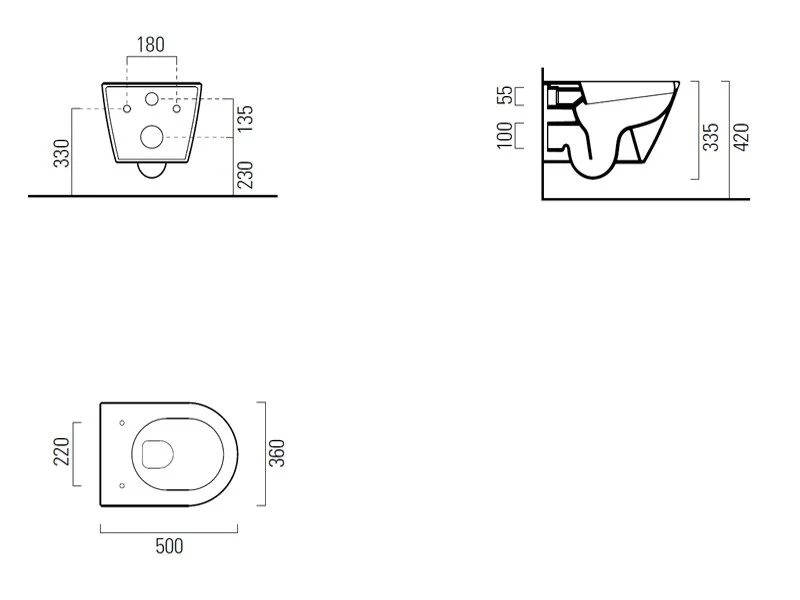 Унитаз подвесной безободковый, размер 50х36 см, с системой смыва "Swirlflush", без скрытого крепежа (с установкой снизу). Цвет - белый.
