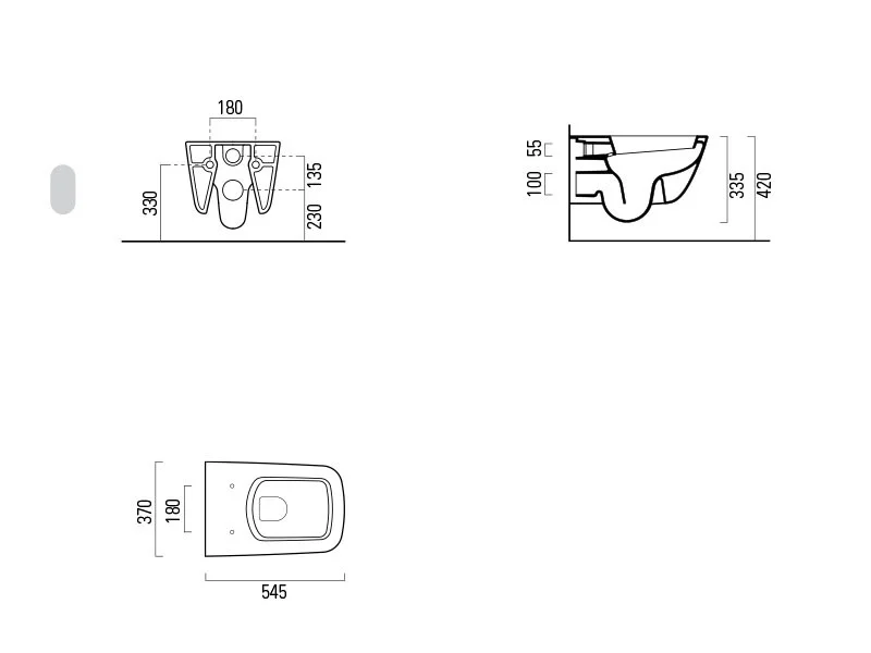Размер - 54.5х37 см. Цвет - белый. Сидение-крышка и комплект креплений приобретаются отдельно.