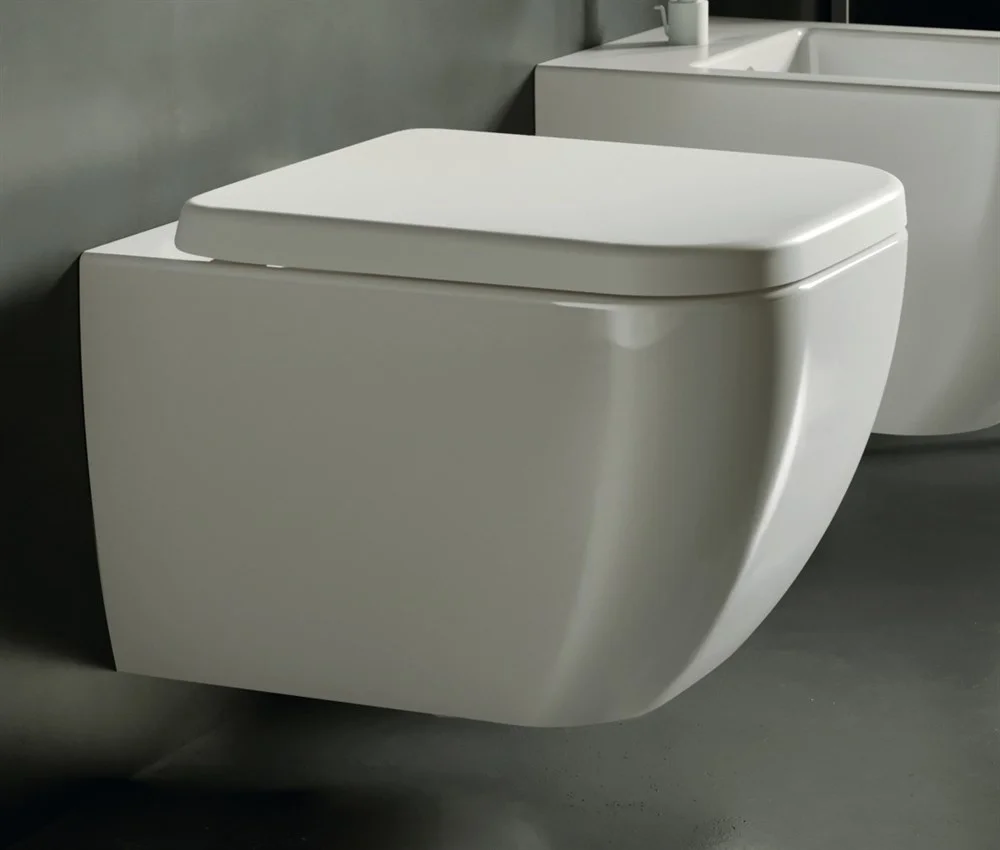 Подвесной унитаз Y1X401 Hatria Bianсa без боковых отверстий, в комплекте с специальным крепежом. Может быть укомплектован сиденьем Y1VB01 с системой плавного закрывания крышки.