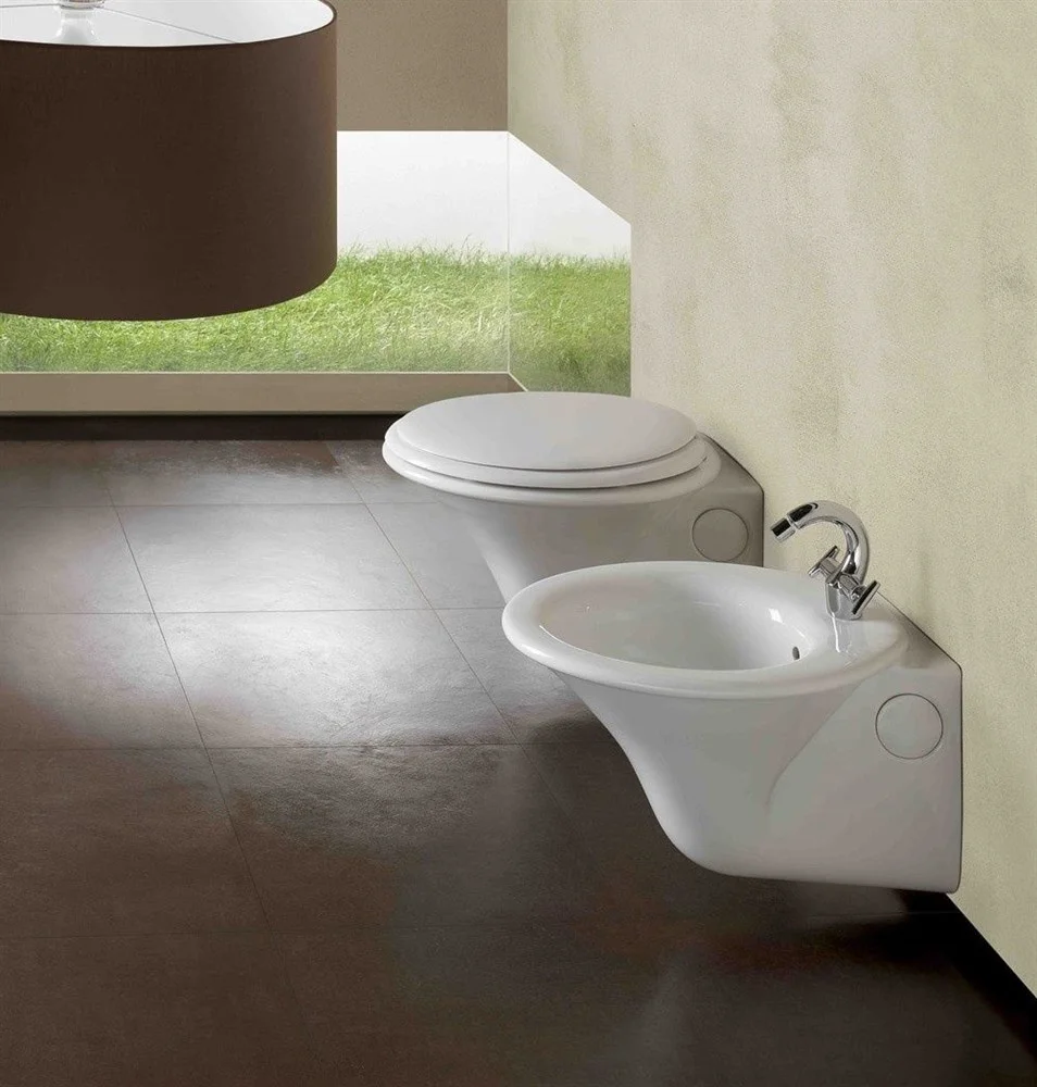 Hatria SCULTURE Y0RU - унитаз подвесной (консольный), для монтажа с кронштейнами Y0I2 для подвесной сантехники или с инсталляционной системой для подвесных унитазов. В комплекте с сидением и крышкой YXXX (soft-close), оснащенной механизмом плавного закрытия. Габариты: высота унитаза 360 мм, ширина 400 мм, вылет от стены 600 мм, расстояние между крепежными шпильками 180 мм, диаметр сливного отверстия ?100 мм, рекомендуемая монтажная высота от чистого пола 410 мм.