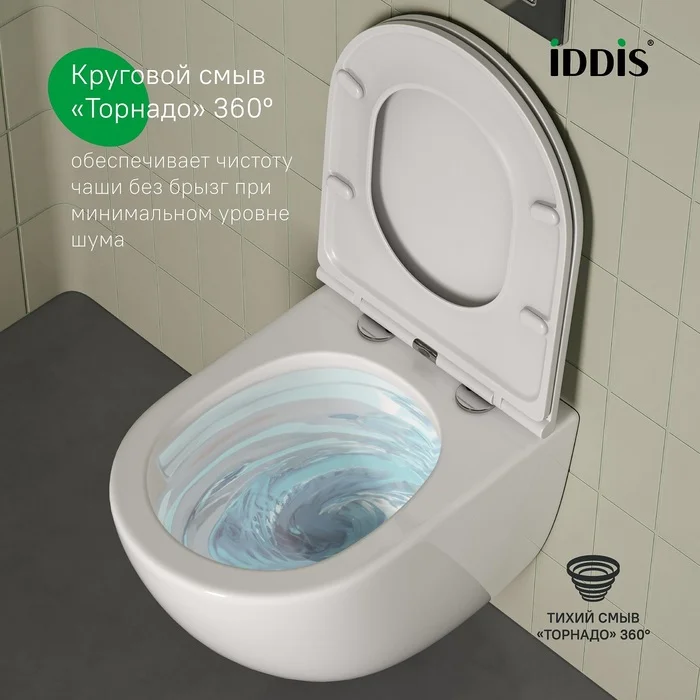 – Одна из самых эффективных систем смыва: струя воды из отверстия в чаше создает эффект водоворота, полностью очищая всю внутреннюю поверхность унитаза.