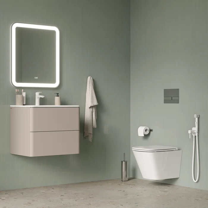 Унитаз отличают безупречные прямоугольные грани и модная эстетика минимализма, что вместе с плоским сиденьем обеспечивает комфорт и гигиеничность при использовании.