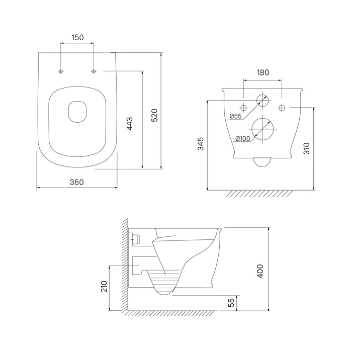• Безободковое строение чаши позволяет обеспечить ее полный омыв – для эффективного смыва, гигиеничности, избавления от неприятных запахов. Т
