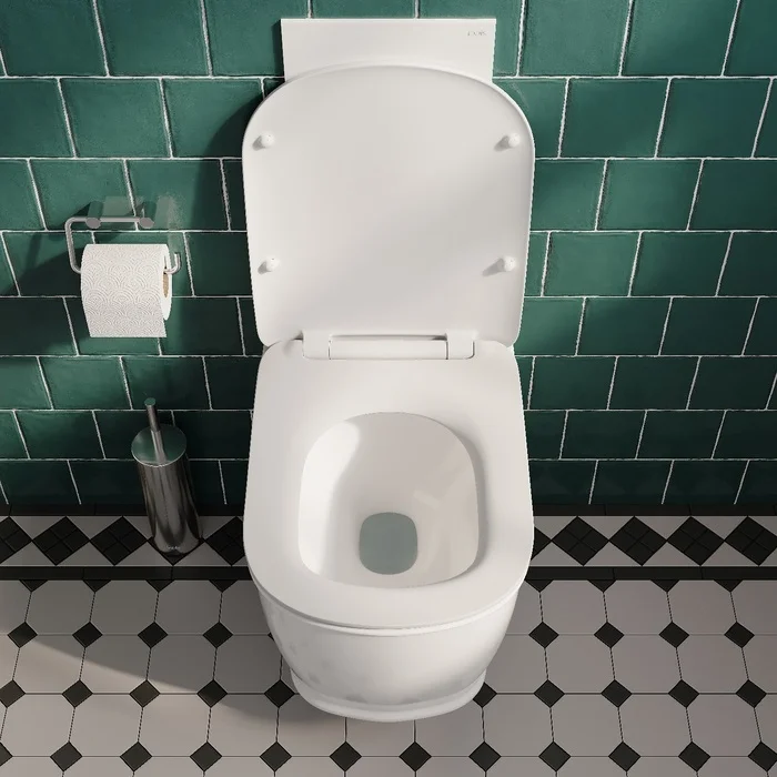• Тонкое сиденье из дюропласта надолго остается белоснежным и чистым благодаря антибактериальным свойствам материала. Крышка сиденья опускается плавно и бесшумно, что делает унитаз максимально комфортным в использовании и уходе. Сиденье легко снять для уборки и установить обратно.