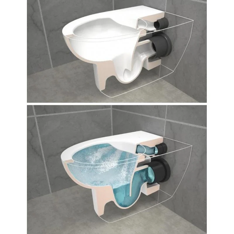 Это комфортный подвесной унитаз, соответствующий всем стандартам современной сантехники. Дизайнерское решение отобразилось в овальной форме модели, исполнении в белом цвете и фурнитуре блестящего хромового оттенка. Режим и механизм слива воды определяются системой инсталляции. 7 распылителей, направляющие воду в заднюю часть чаши, осуществляют эффективный слив. Высокий комфорт при использовании обеспечивается системой антивсплеск. Чаша унитаза безободковая, что намного упрощает её чистку и повышает гигиеничность изделия.