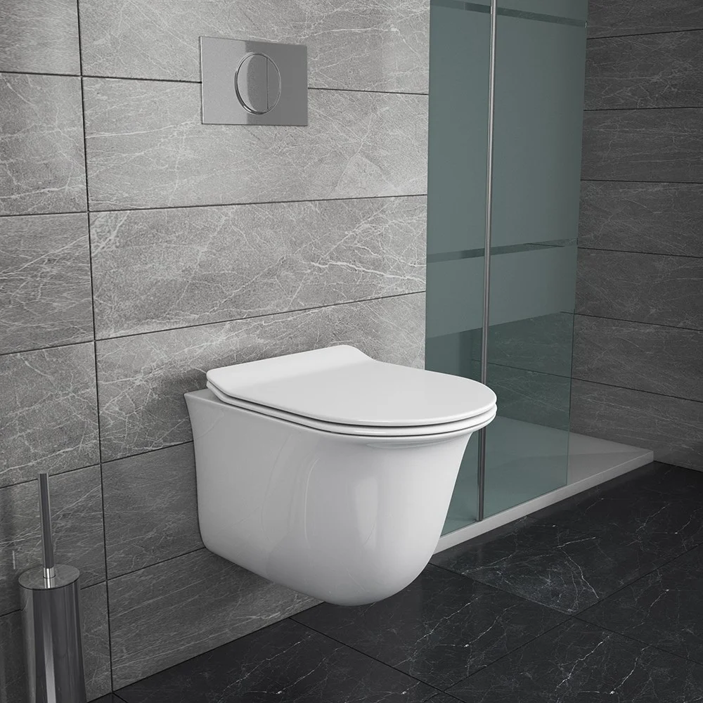 Безободковый (Rimless) подвесной унитаз. Глазурь полностью закрывающая поры в керамике позволяет сделать процесс очистки изделия проще, а также препятствует образованию налёта. Антибактериальное покрытие препятствующее размножению микроогранизмов. горизонтальный (в стену) выпуск. Мощный вихревой слив (Технология Orkan). Быстросъемное сиденье, дюропласт, крышка микролифт.