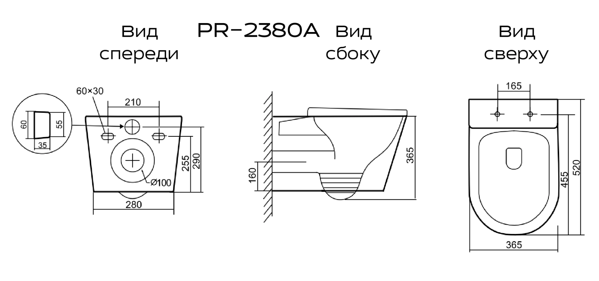 Унитаз подвесной PRATO Рим PR-2380A белый