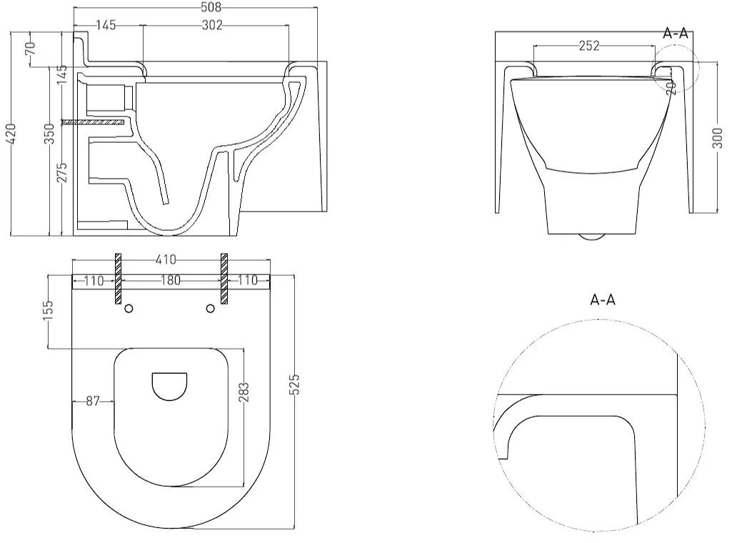 Установка подвесного типа на инсталляцию, крепления в комплект не входят.