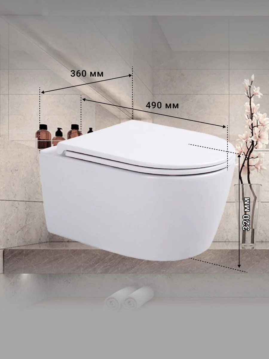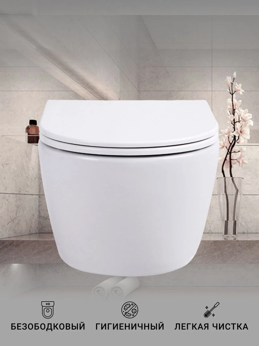 Если вы ищете идеальное сочетание стиля, удобства и гигиеничности для вашей ванной комнаты, тогда унитаз подвесной безободковый с крышкой-сиденьем из дюропласта с микролифтом – именно то, что вам нужно. Этот унитаз для инсталляции подвесной типа сочетает в себе современный дизайн и новейшие технологии, предоставляя пользователю максимум комфорта и простоты в уходе. Безободковая конструкция гарантирует легкость чистки и предотвращает накопление грязи, что способствует поддержанию высокого уровня гигиены. Крышка-сиденье из дюропласта не только долговечна и устойчива к царапинам, но и оснащена функцией микролифта, обеспечивающей плавное и тихое закрытие, что значительно продлевает ее срок службы. Компактные размеры и стильный внешний вид делают этот подвесной унитаз идеальным для любых ванных комнат, независимо от их площади. Он идеально вписывается в современные интерьеры, добавляя нотку элегантности и придавая пространству ощущение легкости и простора. Унитазы подвесные, такие как этот, позволяют визуально увеличить пространство в комнате и упрощают уборку пола, так как унитаз крепится к стене и не имеет опоры на пол. В данном изделии частично отражены достижения таких брендов, как Grohe, известные своим качеством и инновациями, что делает его отличным выбором для современных решений в области сантехники. Устанавливая этот безободковый унитаз, вы получаете не только стильное и удобное санитарное решение, но и способствуете улучшению гигиенических условий, что особенно важно в условиях современного ритма жизни. Унитаз без инсталляции, но с возможностью установки любой инсталляции по вашему выбору, что добавляет великолепной гибкости в монтаже и дальнейшей эксплуатации. Насладитесь преимуществами передовых технологий и высокоэстетичных решений, выбрав этот подвесной унитаз безободковый тип.