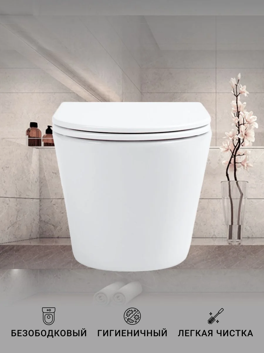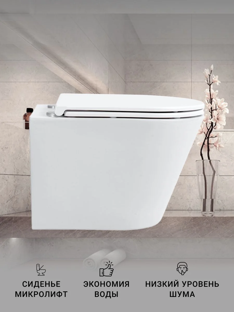 Безободковый подвесной унитаз Sintesi ESSLER с легкосъемной крышкой-сиденьем с функцией плавного закрывания. Безободковая конструкция чаши обеспечивает высочайший уровень гигиены и удобство в уборке из-за отсутствия труднодоступных мест.
