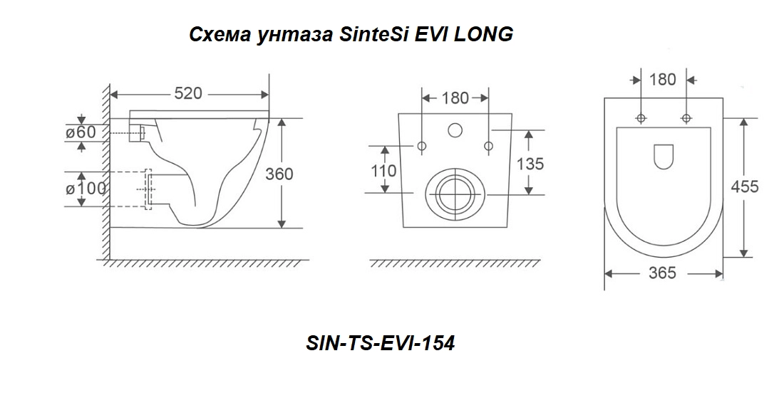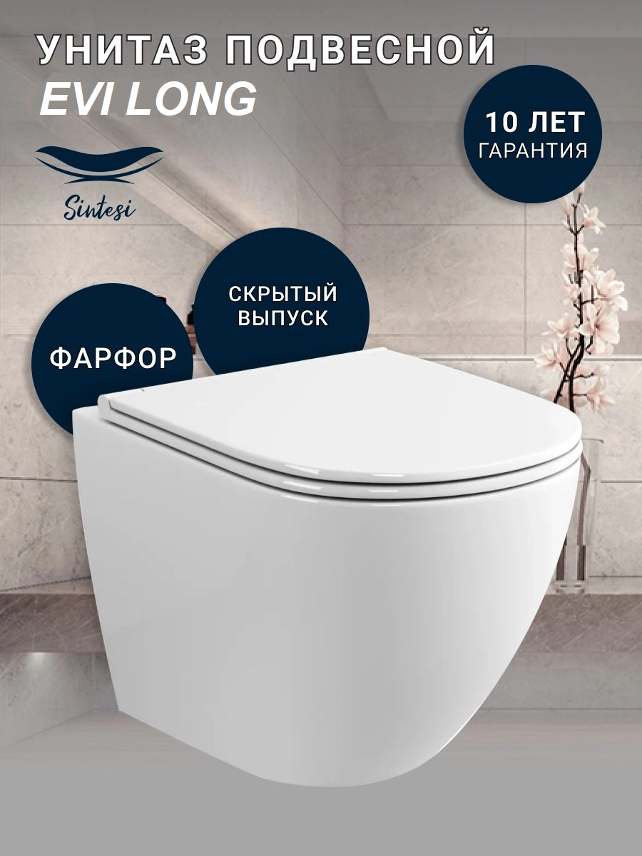 Унитаз подвесной безободковый вихревой со скрытым сливом Sintesi EVI LONG, сиденье дюропласт микролифт.